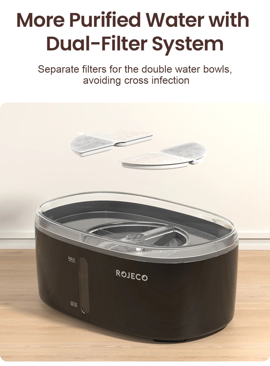 ROJECO Automatic Cat Water Fountain Dual bowls Wireless Pet